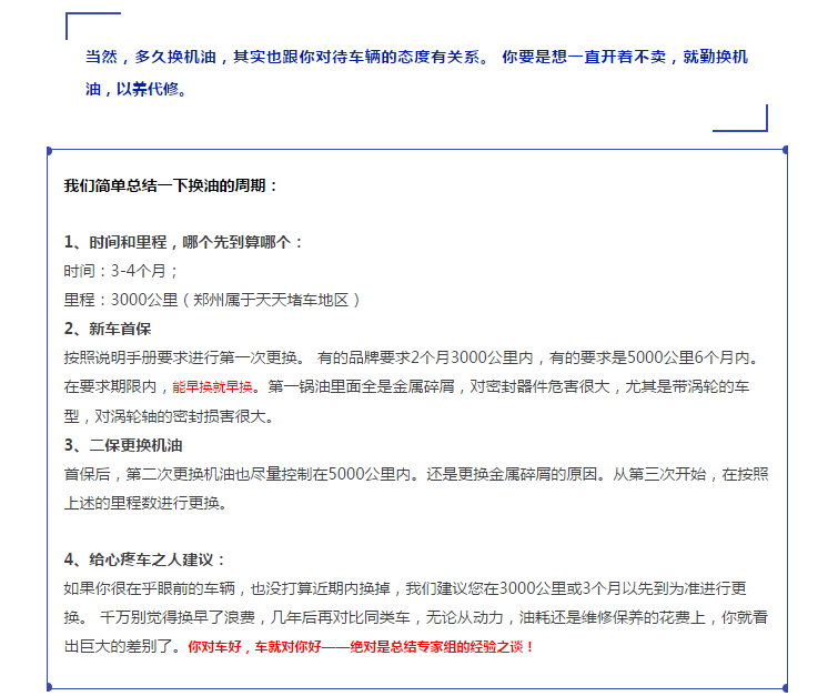所以,從一般的公認(rèn)概念上說,換機(jī)油的時間首先看里程。
